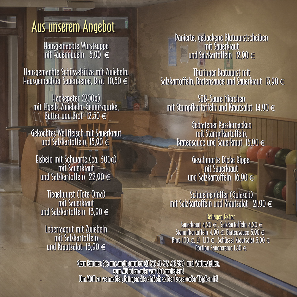 Bei uns können Sie Gerichte vorbestellen und hier im Bowlingeck abholen!